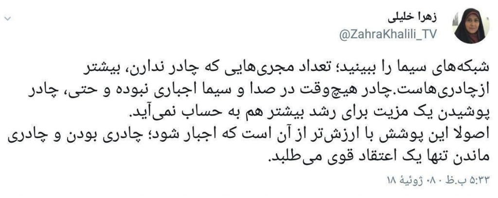 توئیت گوینده شبکه خبر درباره پوشش مجریان صداوسیما