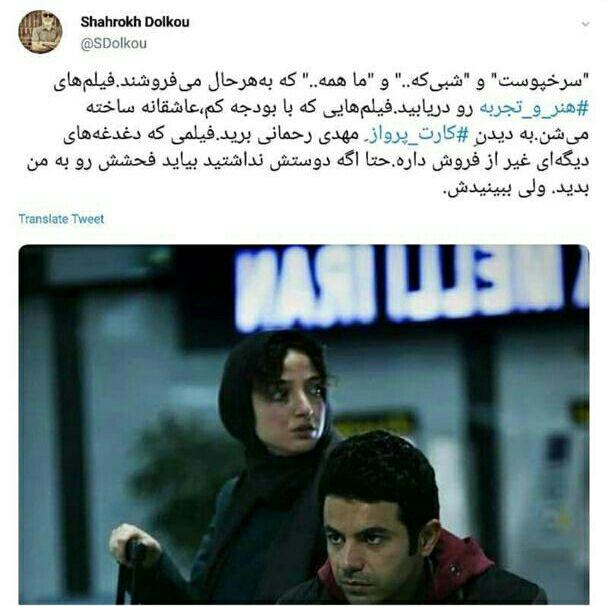 توصیه شاهرخ دولکو به تماشای فیلم ” کارت پرواز ” در سینماهای هنروتجربه: اگر این فیلم را دوست نداشتید بیایید فحشش را به من بدهید ولی حتما آن را ببینید.