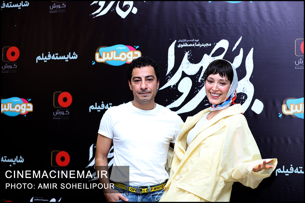 از راست فرشته حسینی و نوید محمدزاده در اکران مردمی فیلم بی سر و صدا