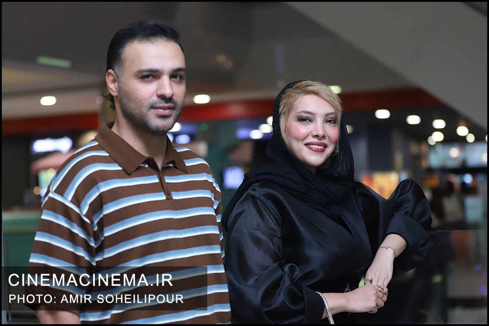 از راست صدف اسپهبدی و سامان صفاری در اکران مردمی گوزن‌های اتوبان
