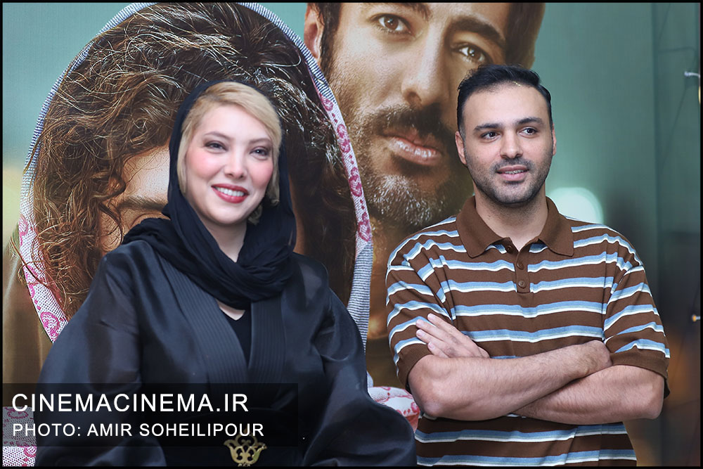 از راست سامان صفاری و صدف اسپهبدی در اکران مردمی گوزن‌های اتوبان