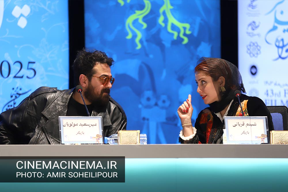 از راست شبنم قربانی و میرسعید مولویان در ششمین روز نمایش آثار چهل و سومین جشنواره فیلم فجر